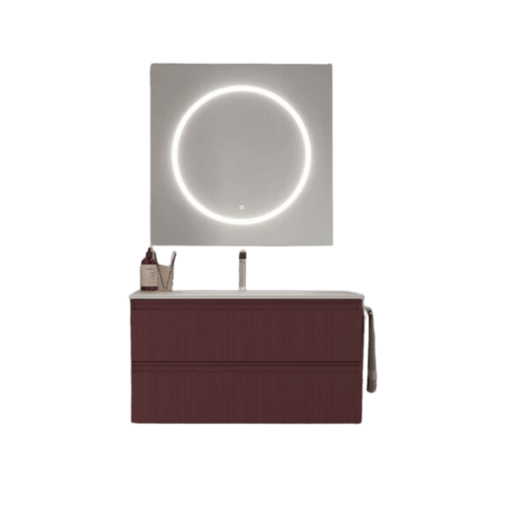 • Basi in Laccato Noce Moscata opaco, specchiera “Step” con illuminazione integrata