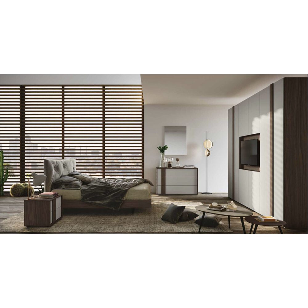L’eleganza geometrica e l’incontro perfetto tra minimalismo ed eccentricità caratterizzano il gruppo d’arredo VAI, che si compone di comò e comodino.