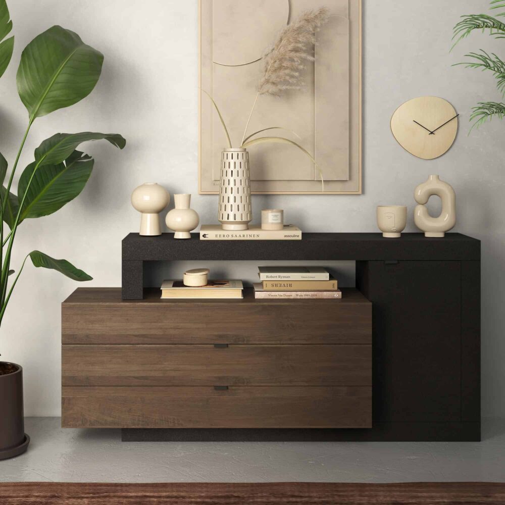 - Una porta e tre cassetti per un’ampia capacità di archiviazione.