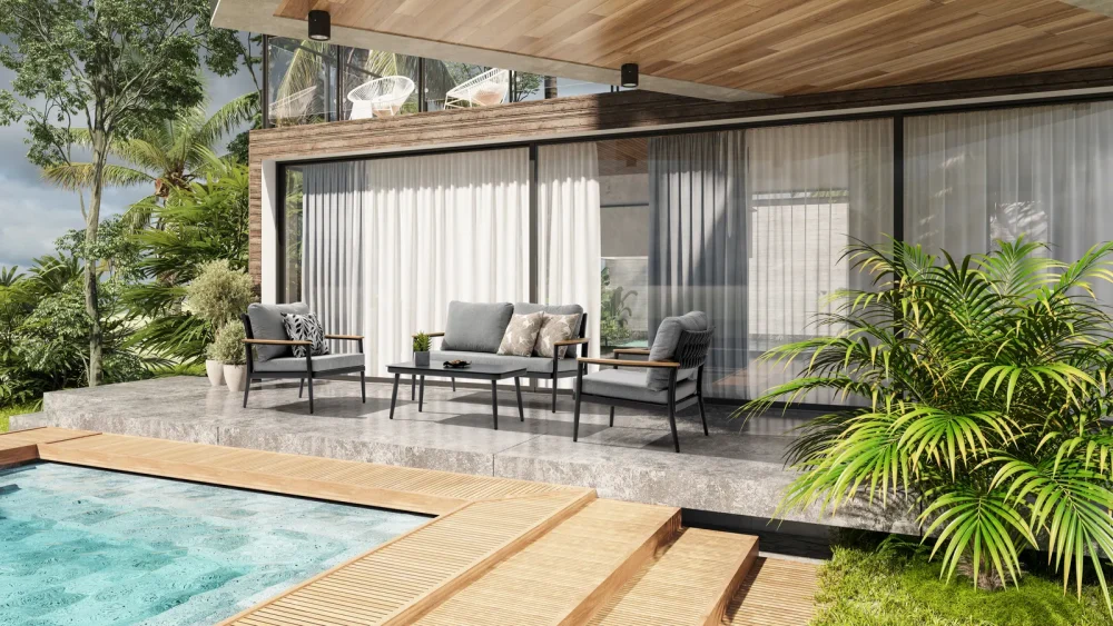 Elevate il vostro spazio esterno con il Set divano outdoor Levanzo! Questo set elegante e moderno comprende un divano da 3 posti e due poltrone comode, perfette per creare un angolo di relax nel vostro giardino o balcone. Il colore grigio antracite dona un tocco di sofisticatezza e eleganza al vostro spazio esterno. Il set include anche un tavolo in omaggio con top in vetro, perfetto per appoggiare i vostri drink e snack preferiti. La struttura robusta e il design moderno rendono questo set un’ottima scelta per arredare il vostro spazio esterno.