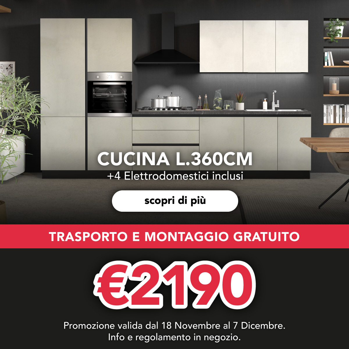 - solo su modello in affissione SMART di NET Cucine Omaggio trasporto e montaggio entro 40KM dal punto vendita Dhom Store.