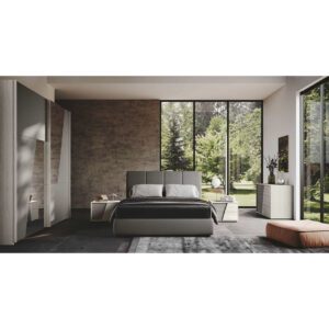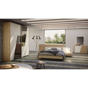 L’eleganza geometrica e l’incontro perfetto tra minimalismo ed eccentricità caratterizzano il gruppo d’arredo VAI, che si compone di comò e comodino.