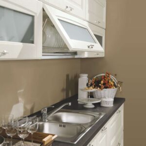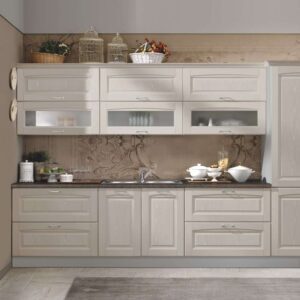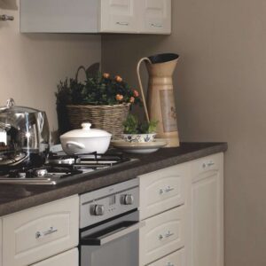 L’elegante geometria della cucina Bea si abbina agli elettrodomestici e accessori dalle finiture moderne.