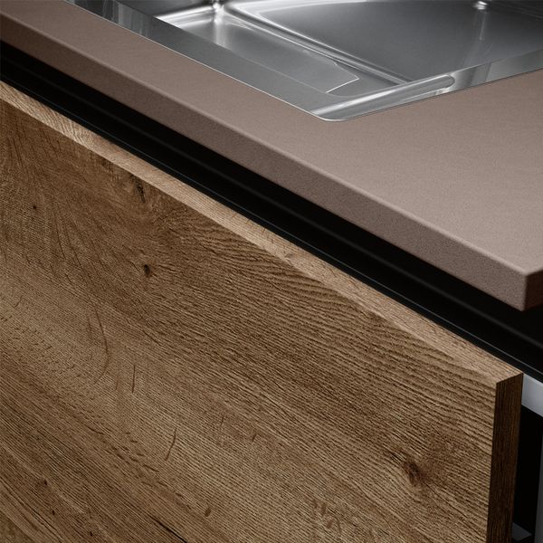 Realizzata con pannelli in particelle di legno nobilitato di classe E1, spessore 22 mm, provenienti da legno recuperato e riciclato, rappresenta una scelta attenta anche alla sostenibilità. Disponibile sia con maniglia che con sistema a gola, si adatta con versatilità a ogni esigenza di stile e funzionalità.