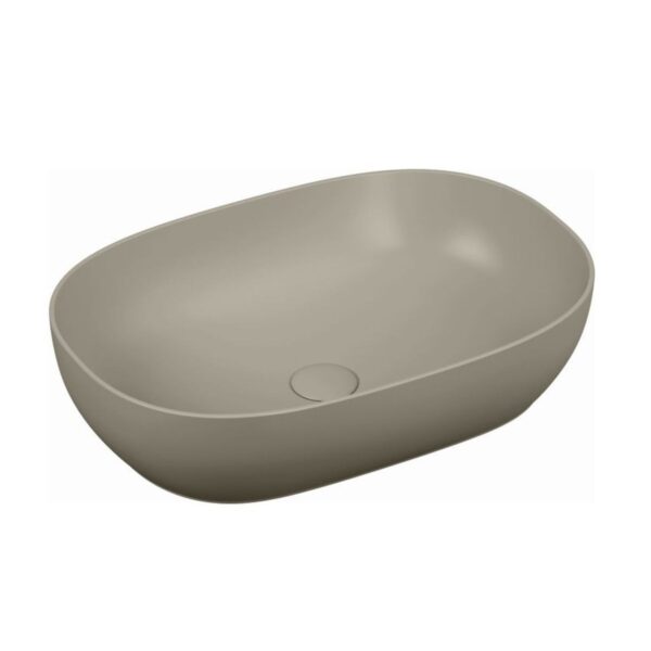 Catino in cerafine con copripiletta inclusa senza foro rubinetto senza troppo pieno. Colore taupe.
