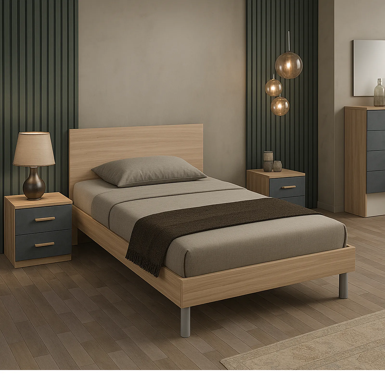 Eleganza e comfort per la tua camera da letto. Il Giroletto Katrina una piazza e mezza in colore olmo offre un design raffinato e una struttura robusta per notti di sonno serene.