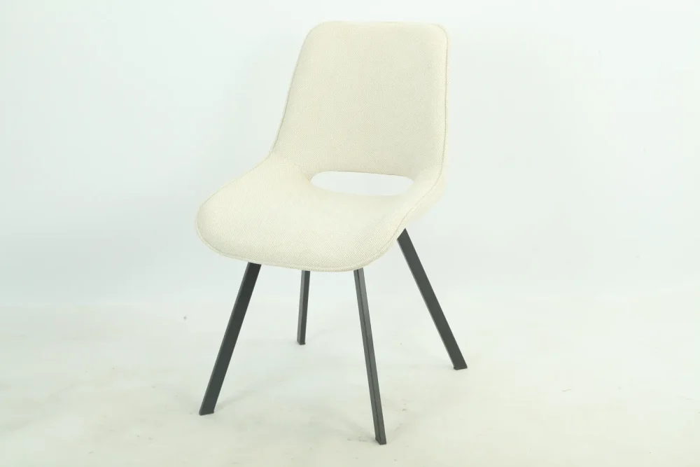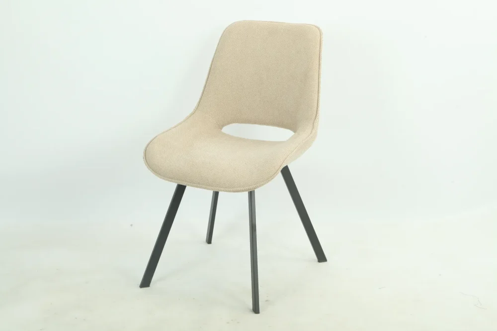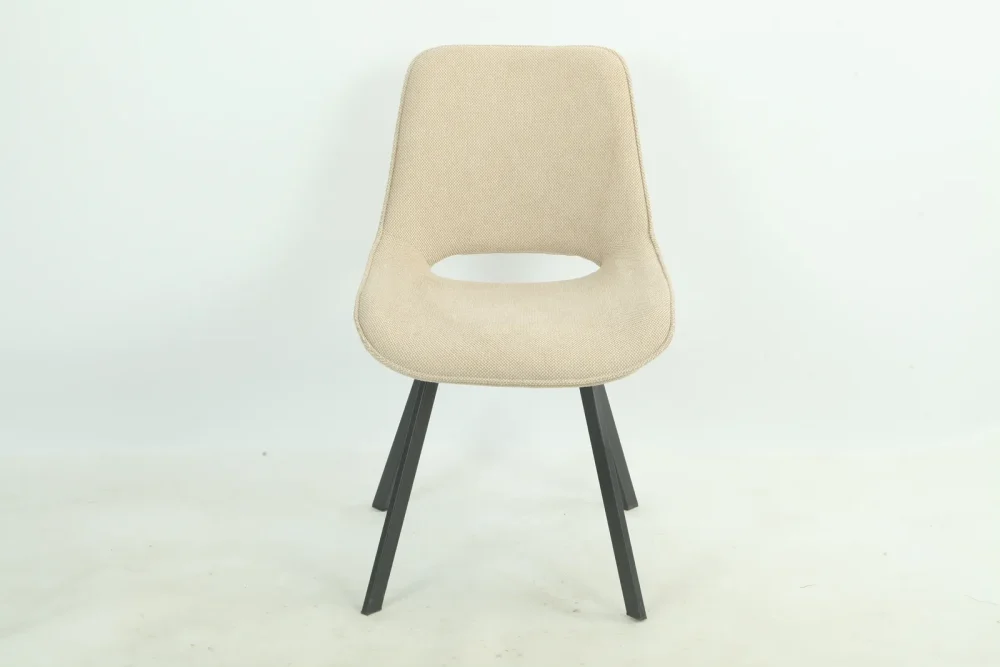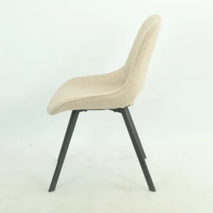 Scopri la Sedia Venezia: struttura in metallo nero, seduta e schienale imbottiti. Rivestimento in tessuto beige. Perfetta per sala da pranzo e soggiorno, disponibile in marrone e beige